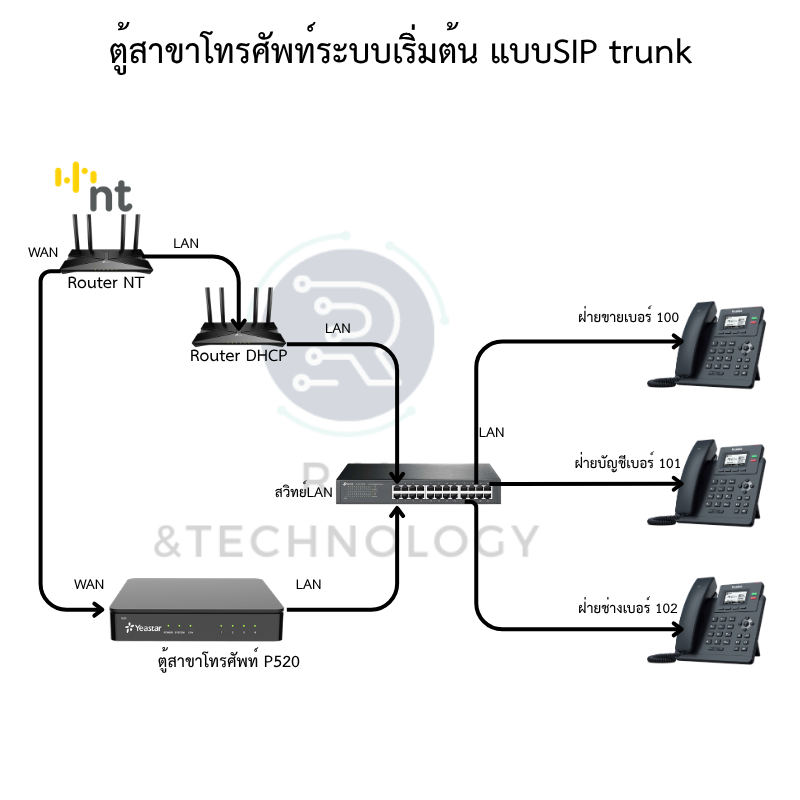 Yeastar P520 1 เครื่อง | SIP-T30 10 เครื่อง |